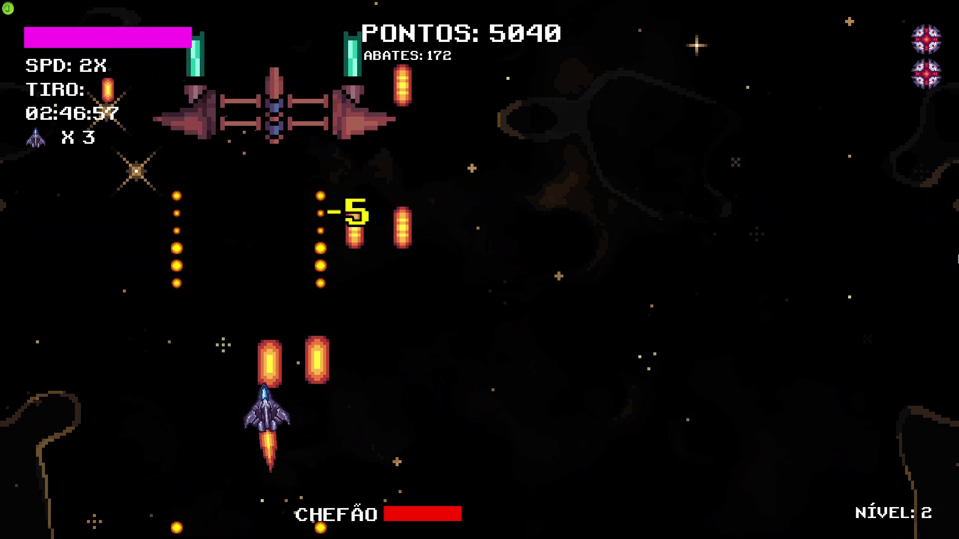 In Place of Time... is my second game made with the Godot Engine. It follows the arcade style of old-school spaceship games, with level progression, weapon and power-up acquisition, and an endless game mode. Download, play, and have fun! Available in Portuguese, English, and Spanish.