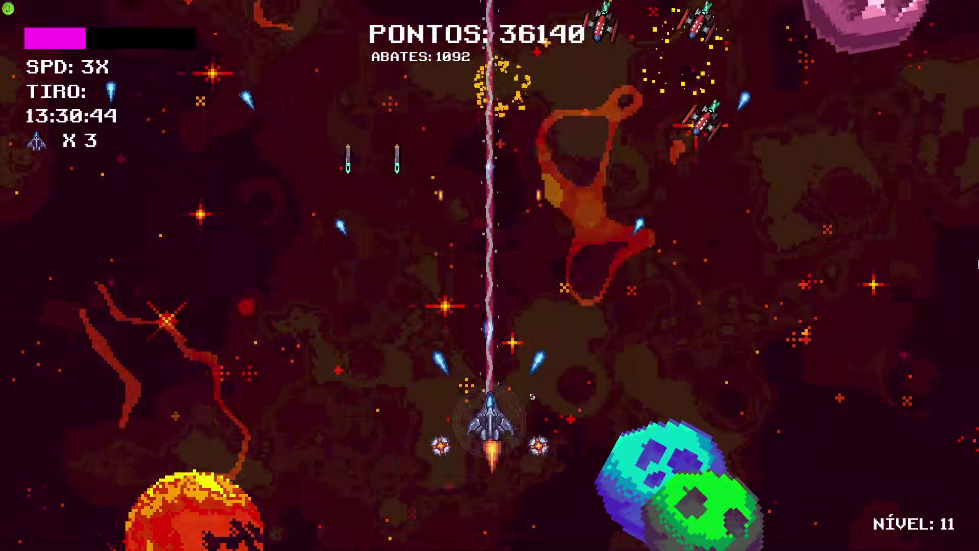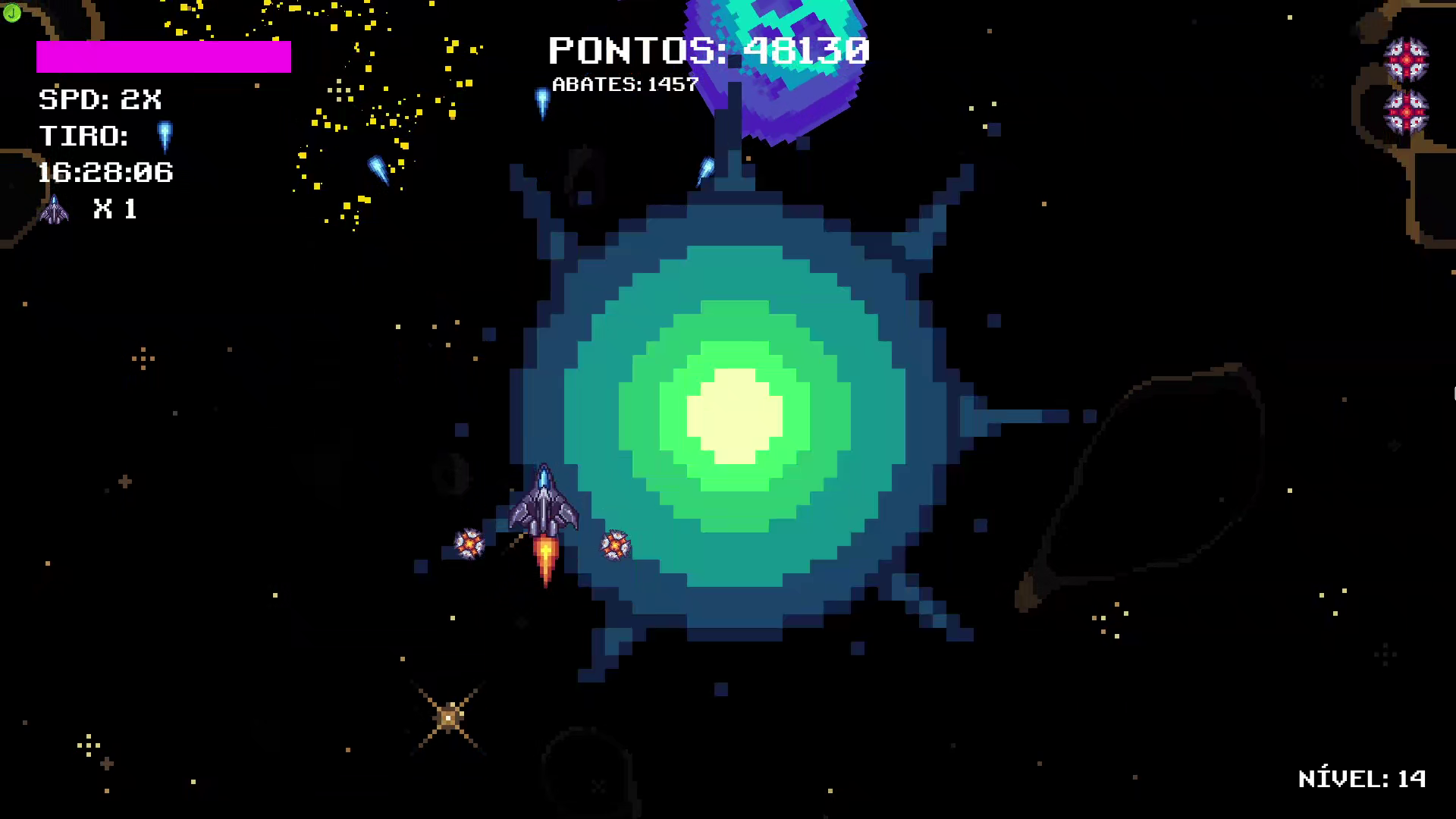 Em Lugar do Tempo... é meu segundo jogo feito na Godot Engine, segue o estilo arcade dos jogos de navinha das antigas, com progressão de nível, aquisição de armas e powerups e um modo infinito de jogo. Baixe, Jogue e Divirta-se!!! Nos idiomas Português, Inglês e Espanhol!!!